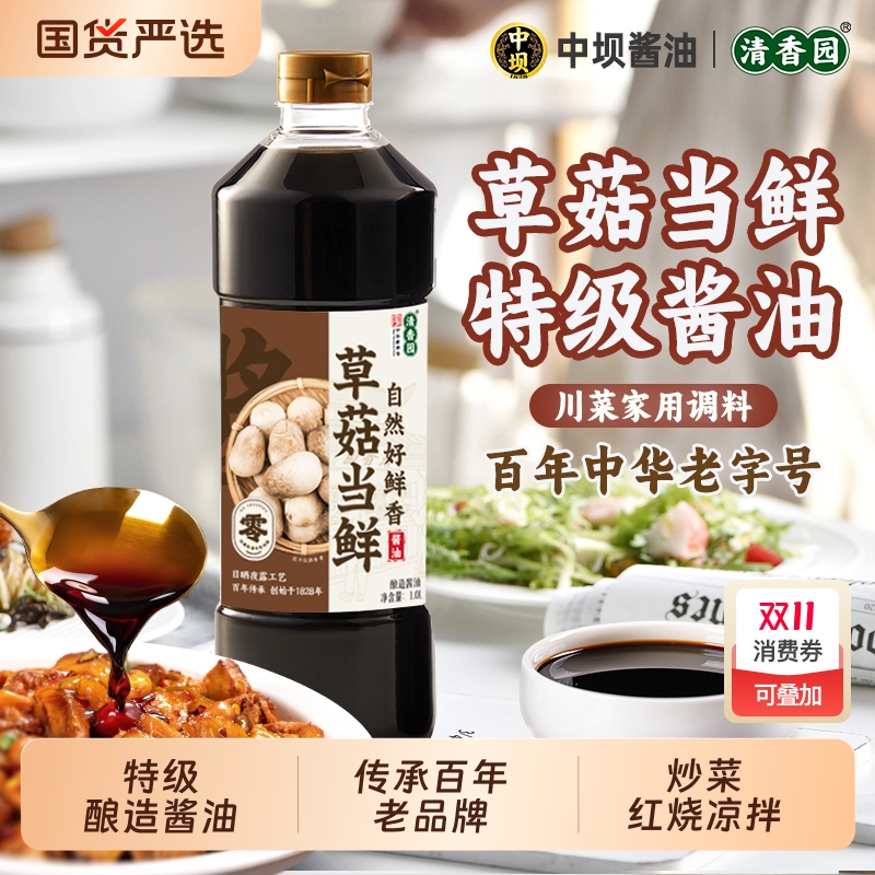 清香园草菇当鲜酱油1L零添加酱油家用调料炒菜凉拌酱油饺子海鲜料