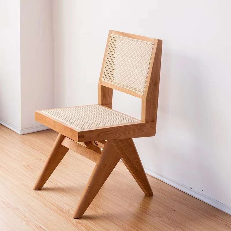 北欧实木藤编椅家用餐椅复古设计师无扶手靠背藤椅阳台昌迪加尔椅