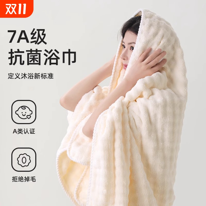 洁丽雅浴巾7A抗菌家用女比纯棉全棉吸水成人宿舍学生裹巾2025新