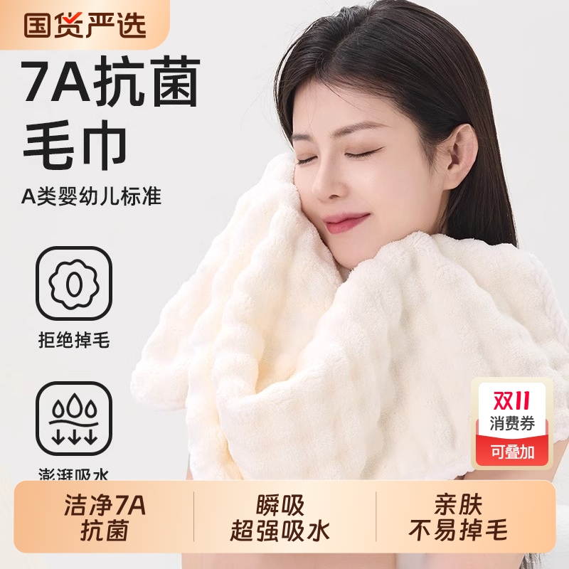 毛巾家用洗脸男比全棉吸水洗澡珊瑚绒不掉毛大号擦头发女柔软亲肤