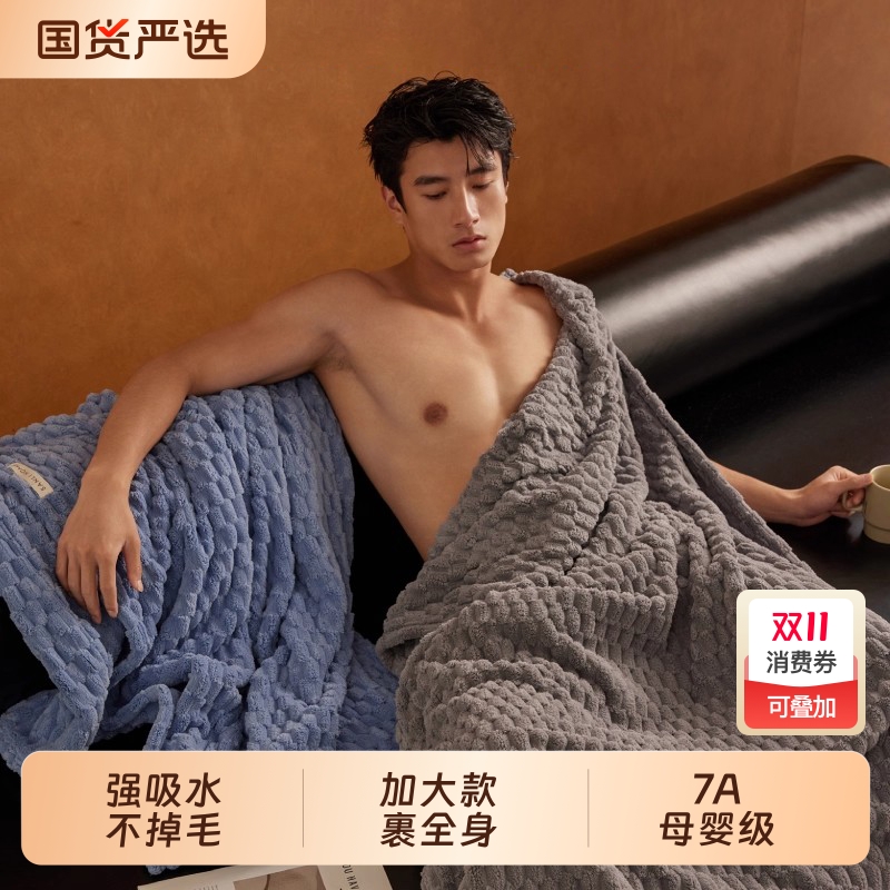 2025新款浴巾男士洗澡家用抗菌比纯棉全棉吸水加厚大毛巾成人裹巾