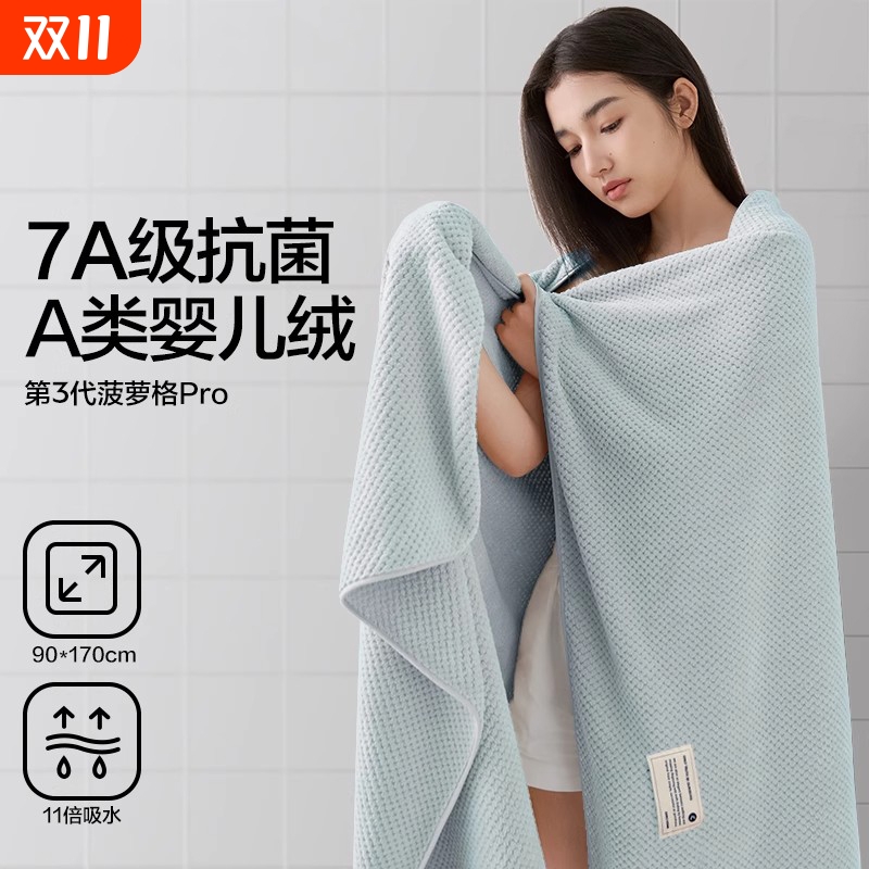三利2条装大人浴巾女家用2025新款比全棉纯棉吸水速干情侣裹巾男