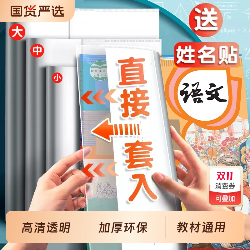 美纹鱼书套自粘透明包书皮套16K包书膜小学生用磨砂书膜书本保护套