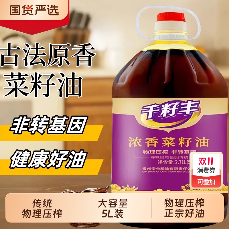千籽丰非转基因菜籽油原榨5L家用压榨纯正品大桶正宗食用浓香煎炸