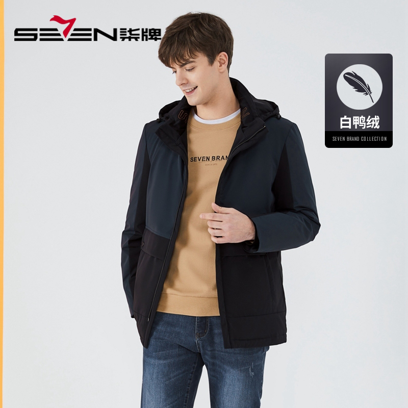男士休闲羽绒服柒牌可拆卸帽领