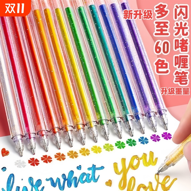 美乐蒂彩色闪光笔亮晶晶珠光荧光标记笔流沙银光啫喱发光水彩笔儿童手