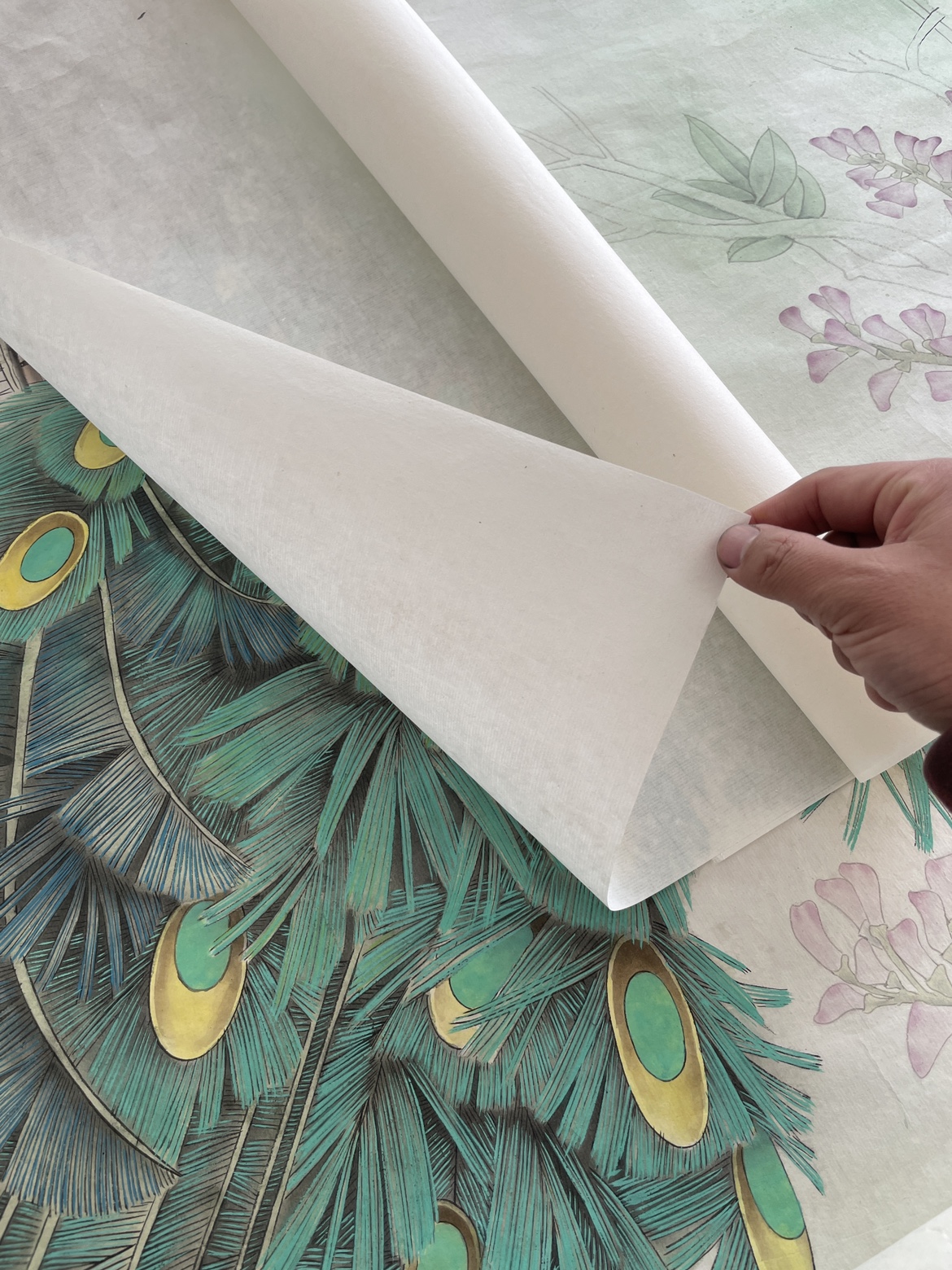 微喷牡丹花卉纹卡纸书法创作纸