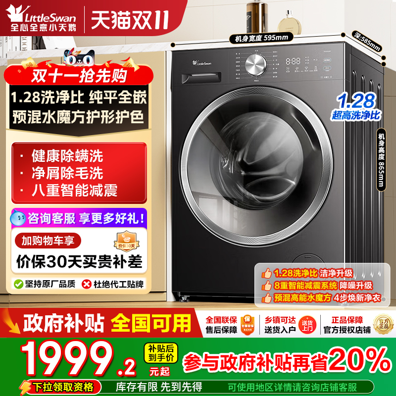 小天鹅洗衣机滚筒家用除菌螨洗脱