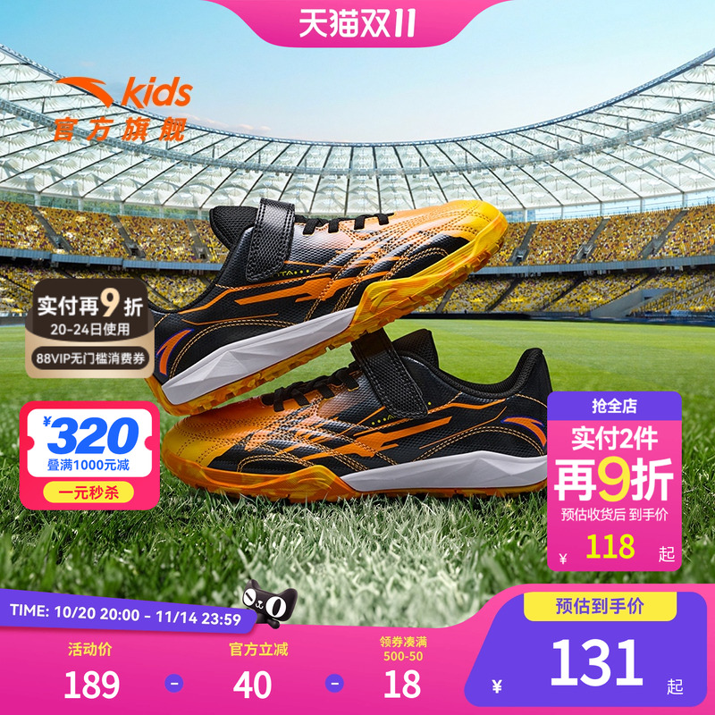 安踏儿童运动鞋男大童鞋2025秋季新品魔术贴碎钉防滑足球鞋综训鞋