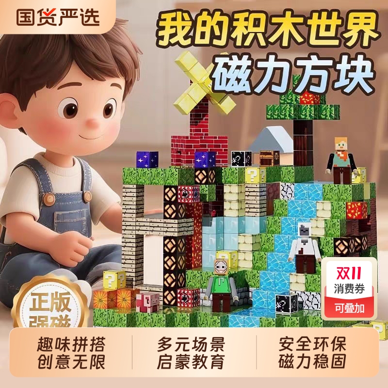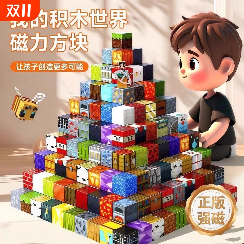 儿童益智磁力方块积木我的世界磁吸玩具男女孩拼搭过家家生日礼物