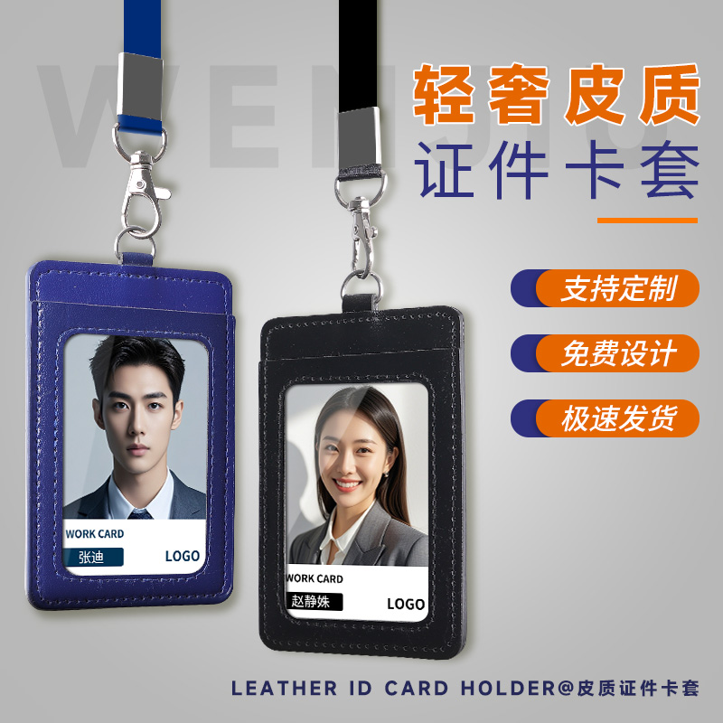 文久皮质证件卡套员工卡套包ic胸卡挂绳工作吊牌带挂绳厂牌胸卡公交