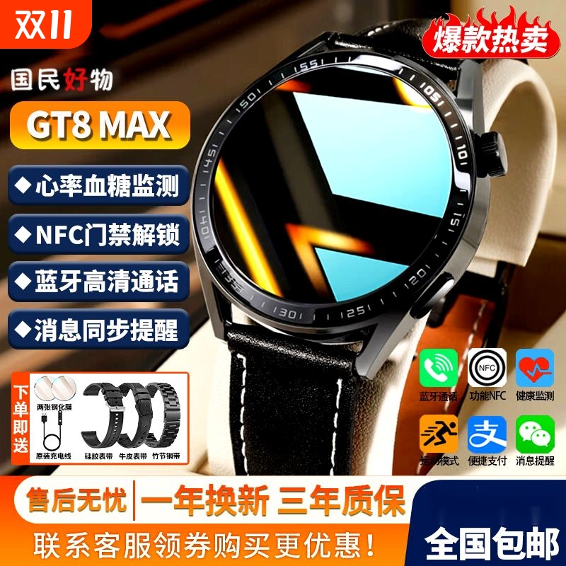 全自动无创测血糖手表智能血压血氧心率睡眠计步运动监测通话手环