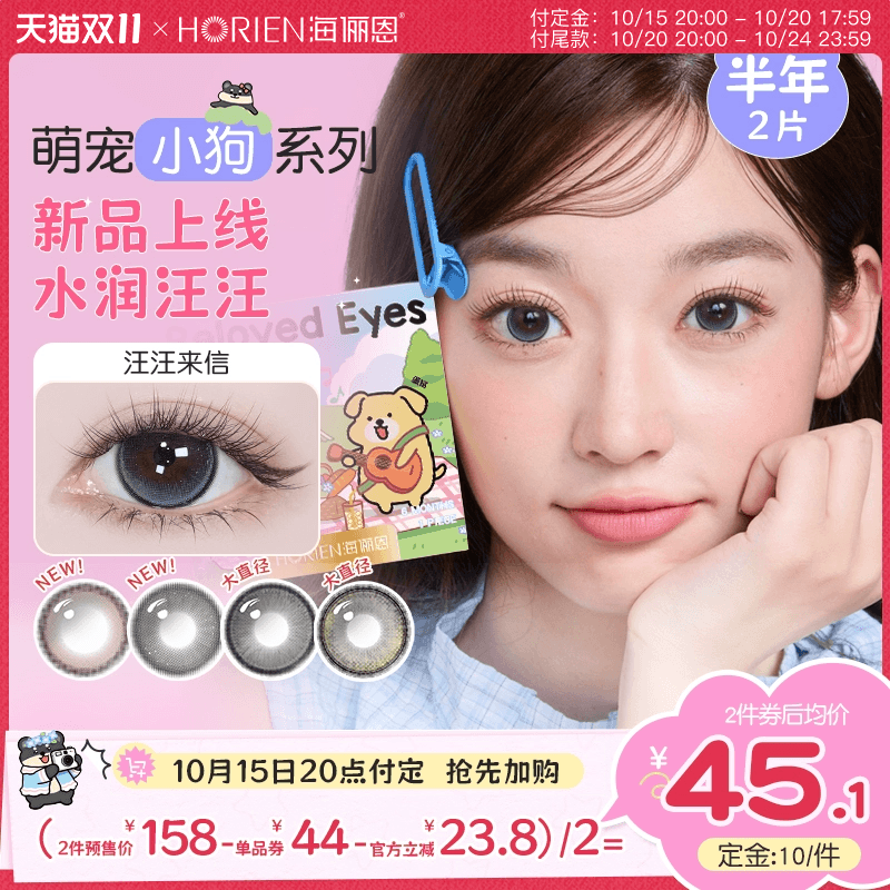 【预售 抢先加购】海俪恩小狗美瞳半年抛2片隐形眼镜正品大小直径