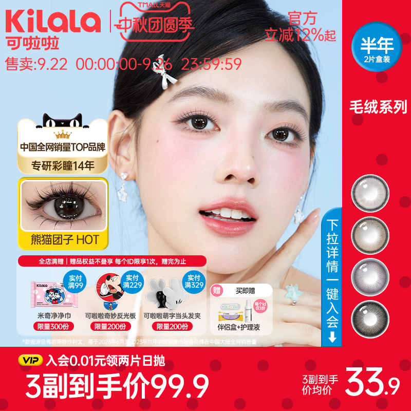 kilala可啦啦毛绒系列美瞳半年抛隐形眼镜大直径2片装三明治工