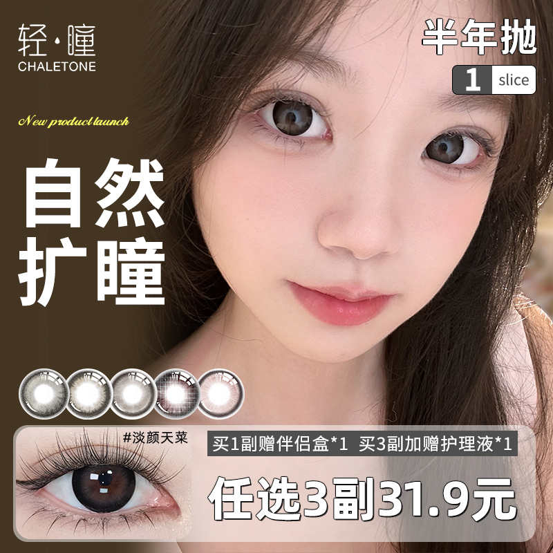 轻瞳美瞳半年抛1片日常自然百搭大小直径扩瞳水母环游隐形眼镜