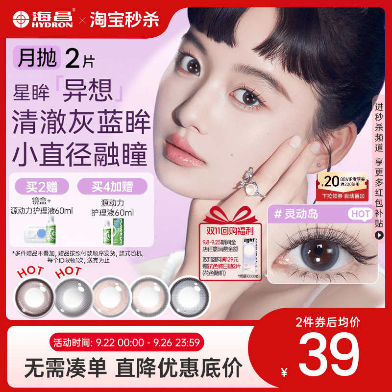 海昌美瞳月抛异想2片大小直径蓝色隐形眼镜近视女正品官方旗舰店
