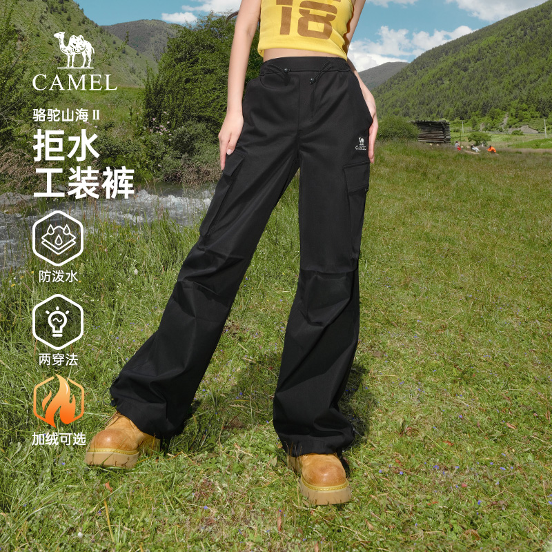 骆驼山海工装裤女装2025秋冬新款黑色加绒防水户外运动登山冲锋裤