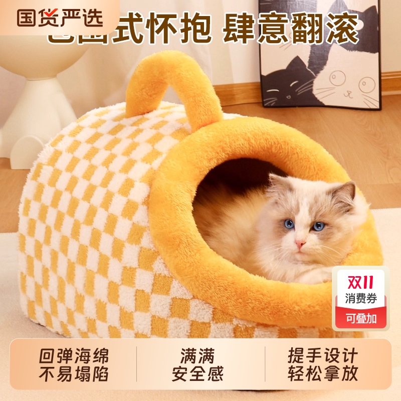 猫窝冬季保暖封闭式猫床小型犬狗窝四季通用猫咪睡袋宠物窝室内