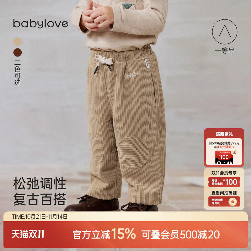 babylove宝宝裤子秋冬休闲长裤灯芯绒保暖纯色百搭儿童外出直
