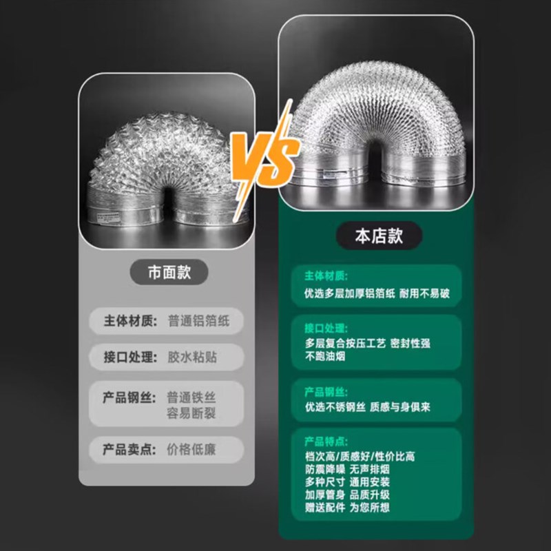 热销厨房抽吸油烟机排风管排气管烟道管烟囱软铝箔通风配件大全瓦
