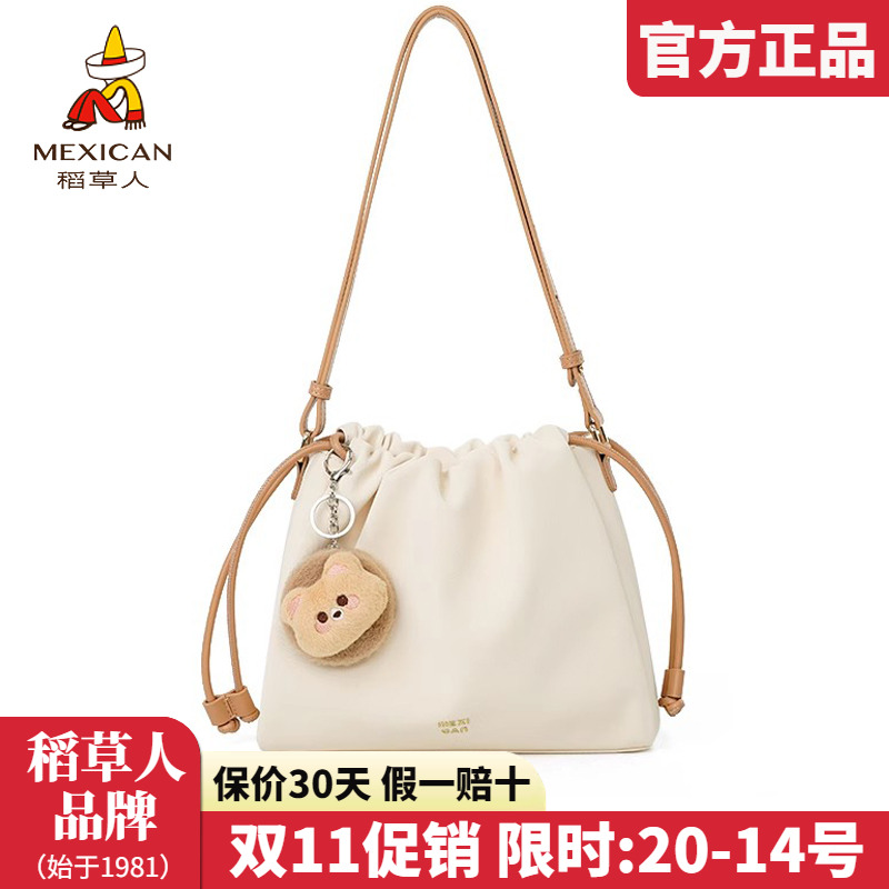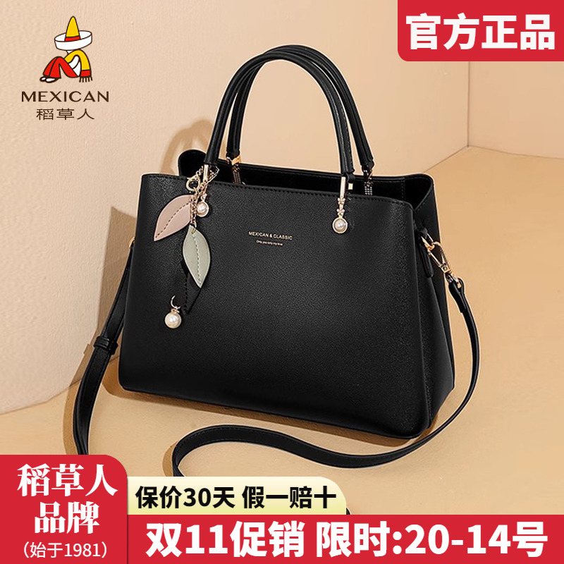 稻草人真皮女包2025新款手提包大容量简约妈妈百搭单肩斜挎包正品
