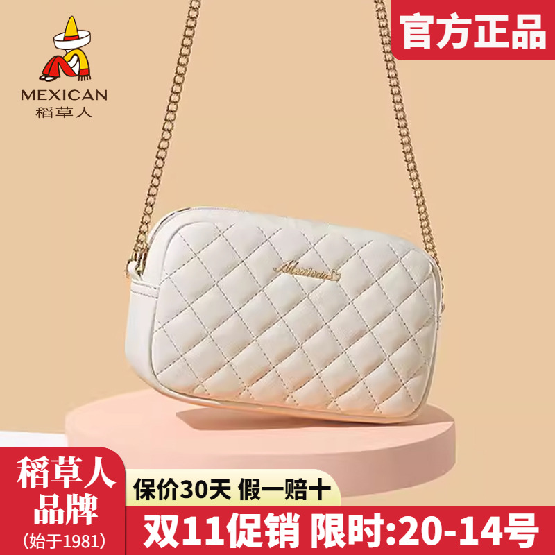 稻草人手机包新款小巧单肩女斜挎包真皮撞色高级感牛皮手机小挎包