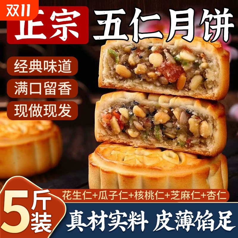 传统五仁月饼儿时味道皮薄馅大独立包装中秋糕点点心批发零食散装