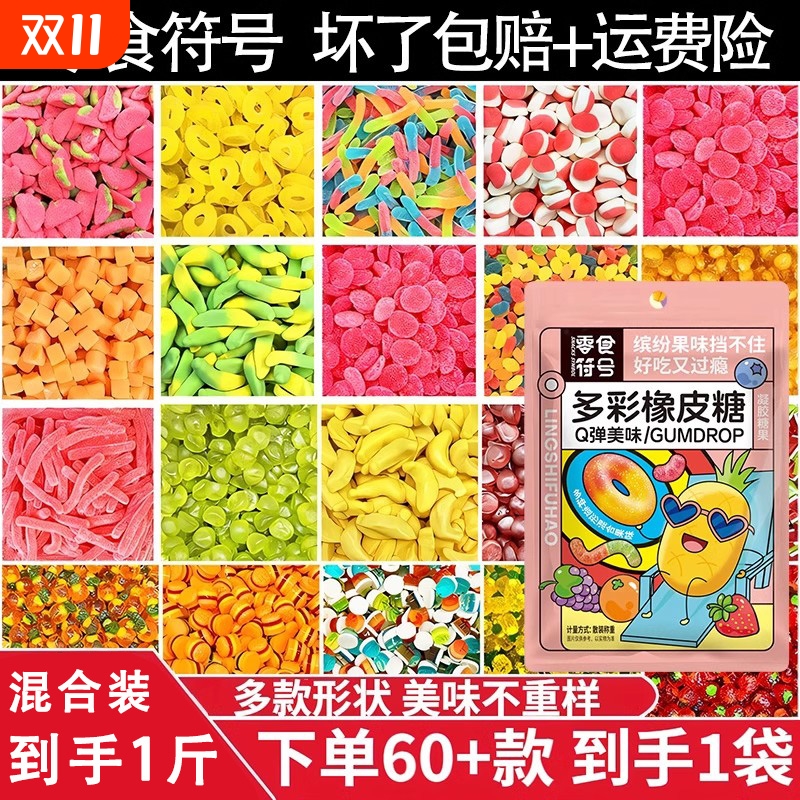 零食多彩橡皮软糖酸砂沙爆浆水果味橡软糖4D果汁软糖皮糖混合好吃