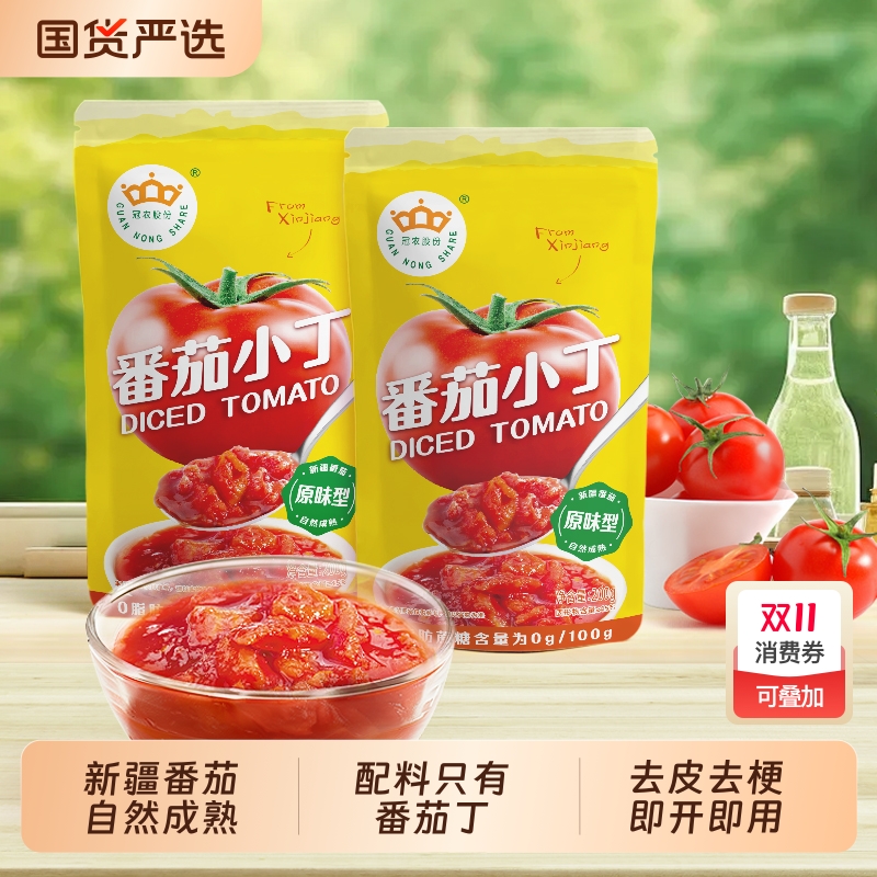 新疆冠农番茄小丁200g/袋无添加糖鲜切小颗粒番茄丁去皮袋装家用