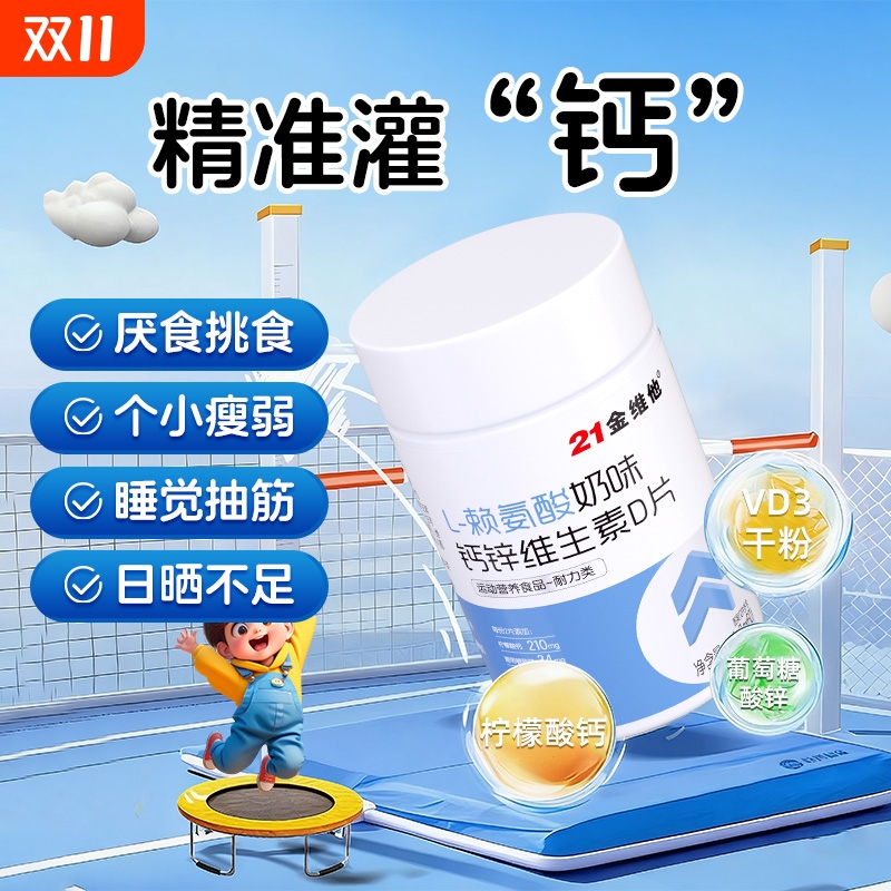 21金维他赖氨酸钙铁锌维生素d片生长素青少年儿童补钙成长高正品