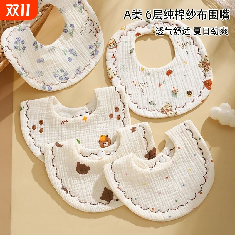 口水巾婴儿围嘴a类纯棉6层纱布0-2岁宝宝新生儿口水围兜吸水婴童