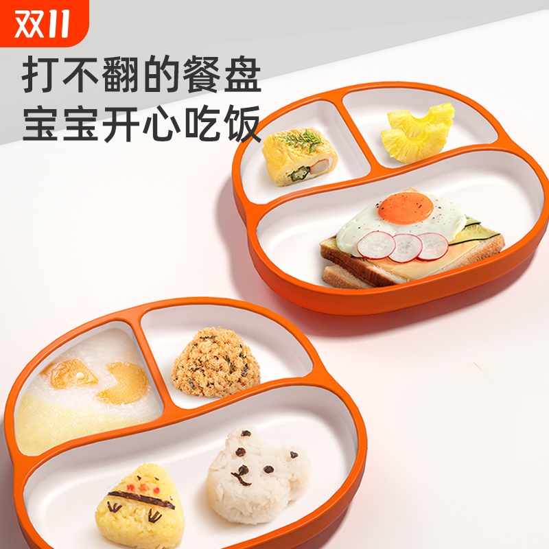 宝宝儿童餐盘吸盘硅胶分格辅食盘婴儿吃饭训练勺子餐具套装不锈钢