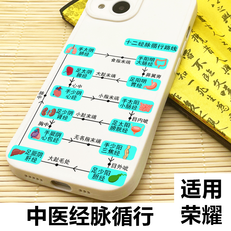 中医经脉循行手机壳气血流注图适用华为荣耀60se80GT/X50