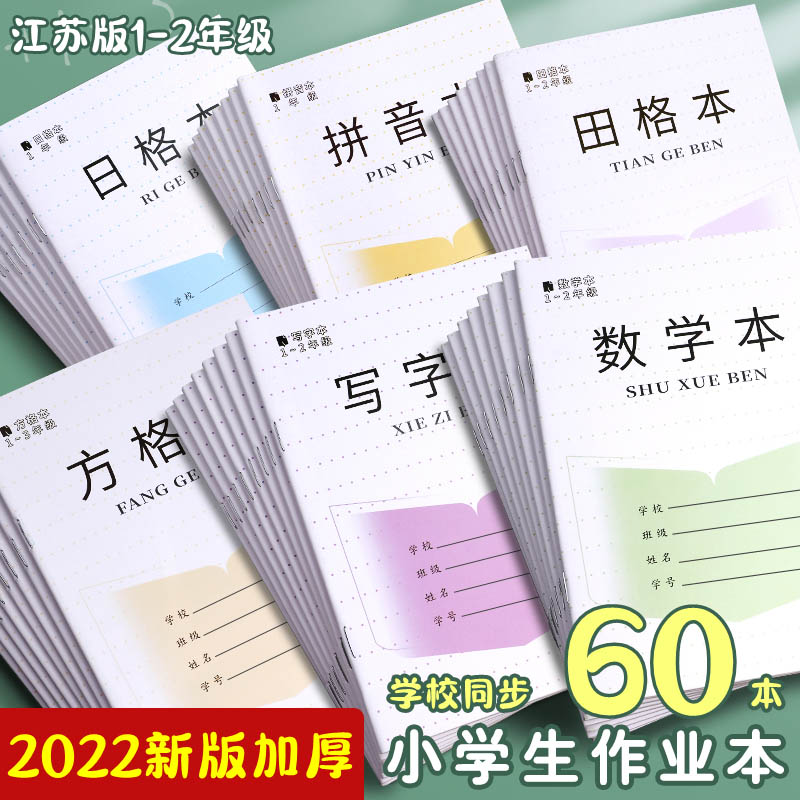 小学生作业本子统者一12年级田格本加厚三线拼音本写田字本数学本