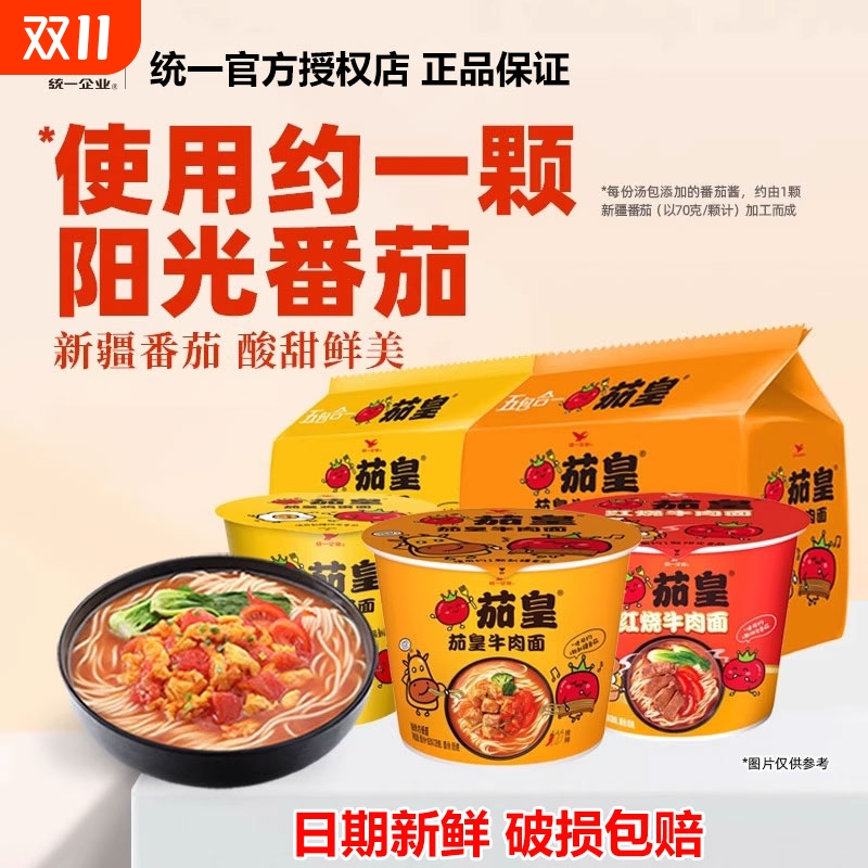 统茄皇牛肉面新疆番茄西红柿鸡蛋方便面袋桶装充饥速食夜宵泡面一