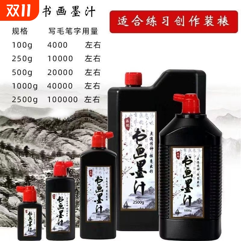 正品高浓度书法墨汁初学者专用毛笔国画书法练字创作墨水大瓶小瓶