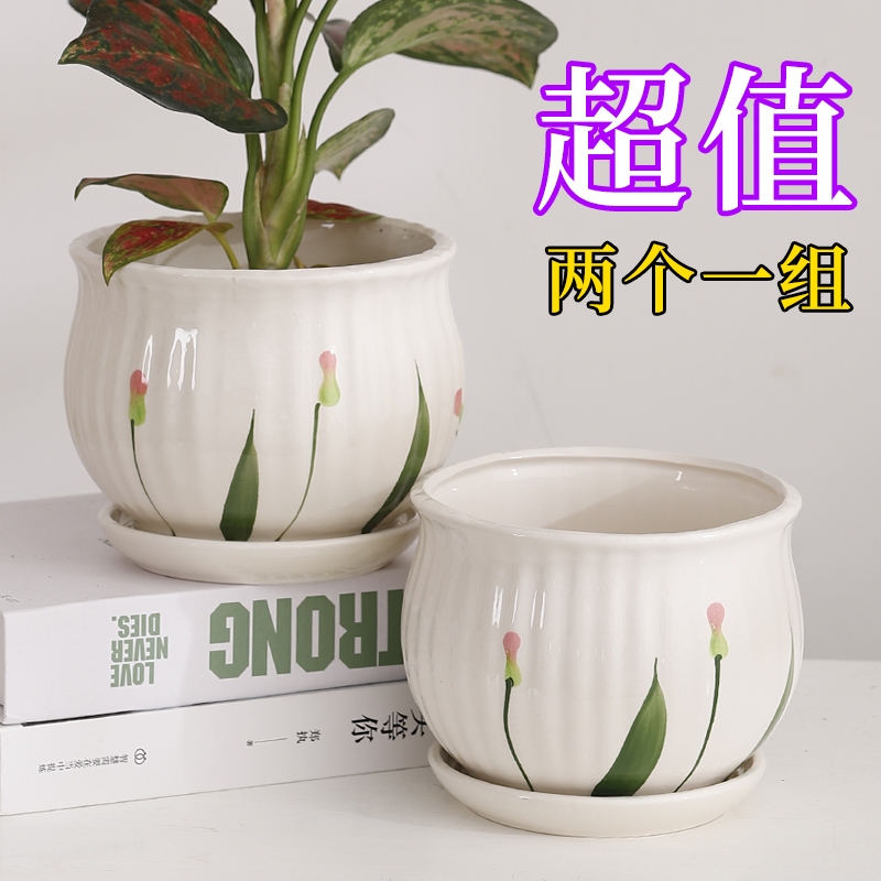 花盆陶瓷带托盘清仓大号中号个性简约家用绿萝吊兰多肉蝴蝶兰特大