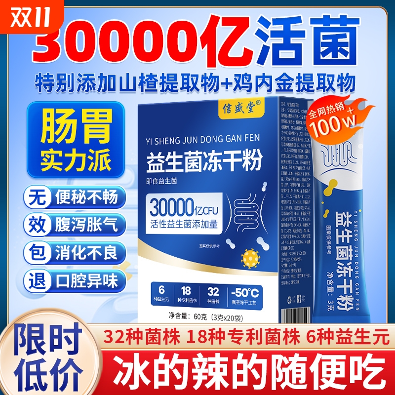【多重专利 】万亿益生菌冻干粉儿童孕妇成人益生元呵护肠胃肠道
