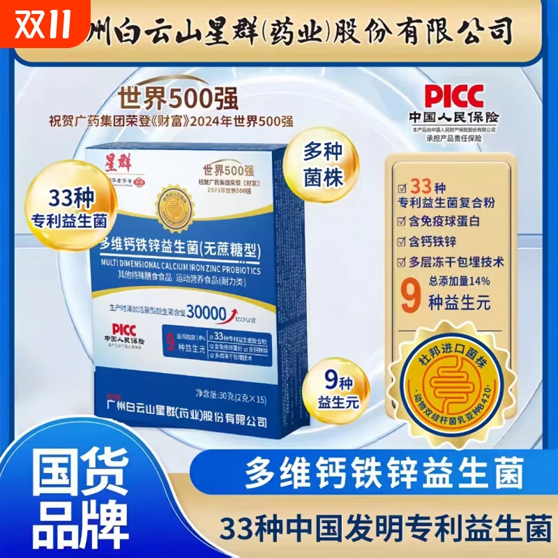 白云山星群多维钙铁锌益生菌无蔗糖冻干粉肠胃肠道便秘益生元菌XT
