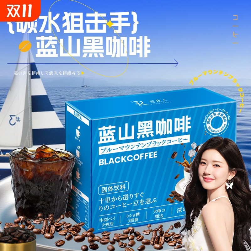 蓝山黑咖啡官方旗舰店正品燃减0脂瘦咖啡无糖0减提高代谢肥身速溶