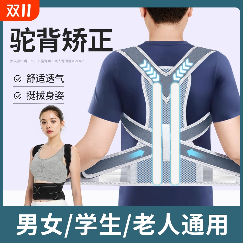 驼背矫正器男士沉肩直腰美背体H态神器矫姿带开肩调整拉背背部