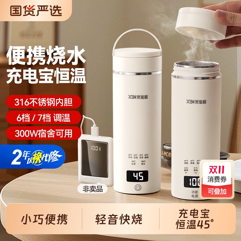贤宝能便携式烧水杯恒温小型电热烧水出差旅行水壶保温加热保温杯