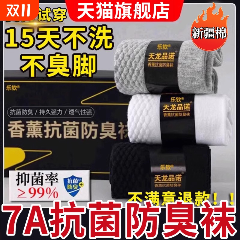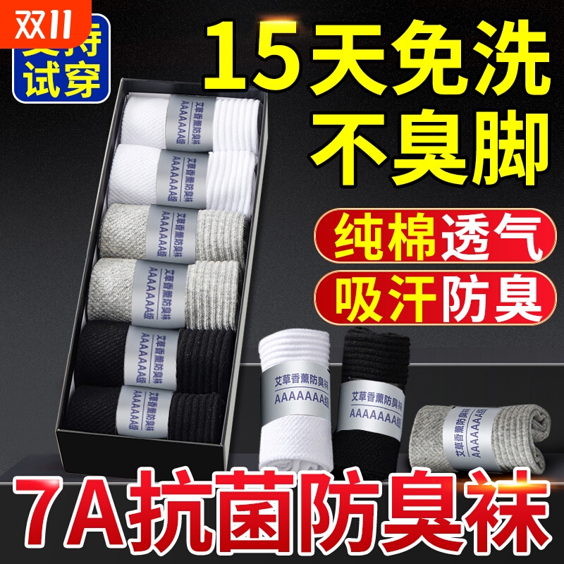 10A抗菌袜子男纯棉防脚气防臭秋冬吸汗长青少年款女士短中筒商务7