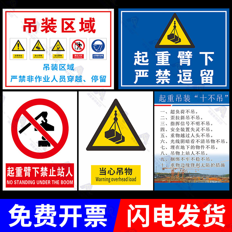 当心吊物安全标识牌吊装区域起重机小心吊物落物警示牌吊装作业区域禁