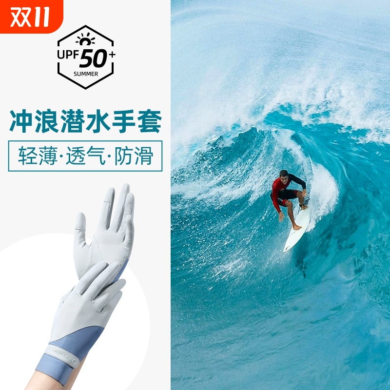 潜水专用手套女薄款防晒自由浮潜冲浪装备防滑防刮刺游泳全指手套
