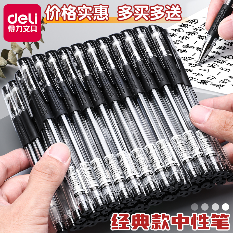 得力拔帽中性笔水笔学生用刷题笔子弹头签字笔水性碳素黑笔0.5mm