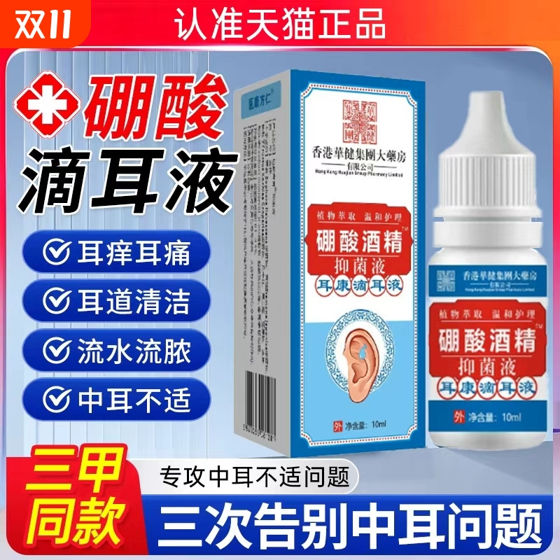 硼酸酒精滴耳液中耳外耳道专用耳朵痒真菌感染药抑菌炎采耳清洁