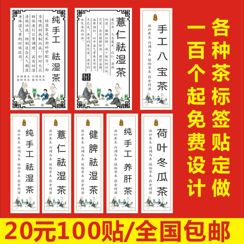 诗束 纯手工祛湿薏仁健脾养肝荷叶冬瓜八宝茶商标签瓶贴纸不干胶定