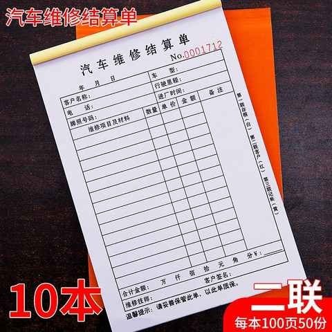 汽车维修报价单修理厂明细表修车工单接车单据记账本汽修结算清单
