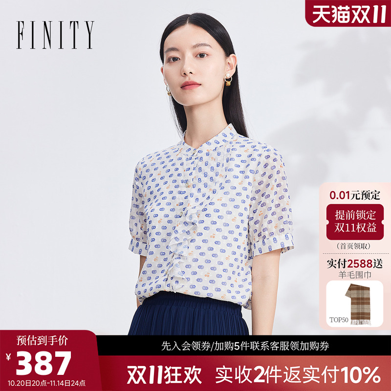 FINITY菲妮迪法式荷叶领雪纺衫2024年春夏新品剪花工艺设计